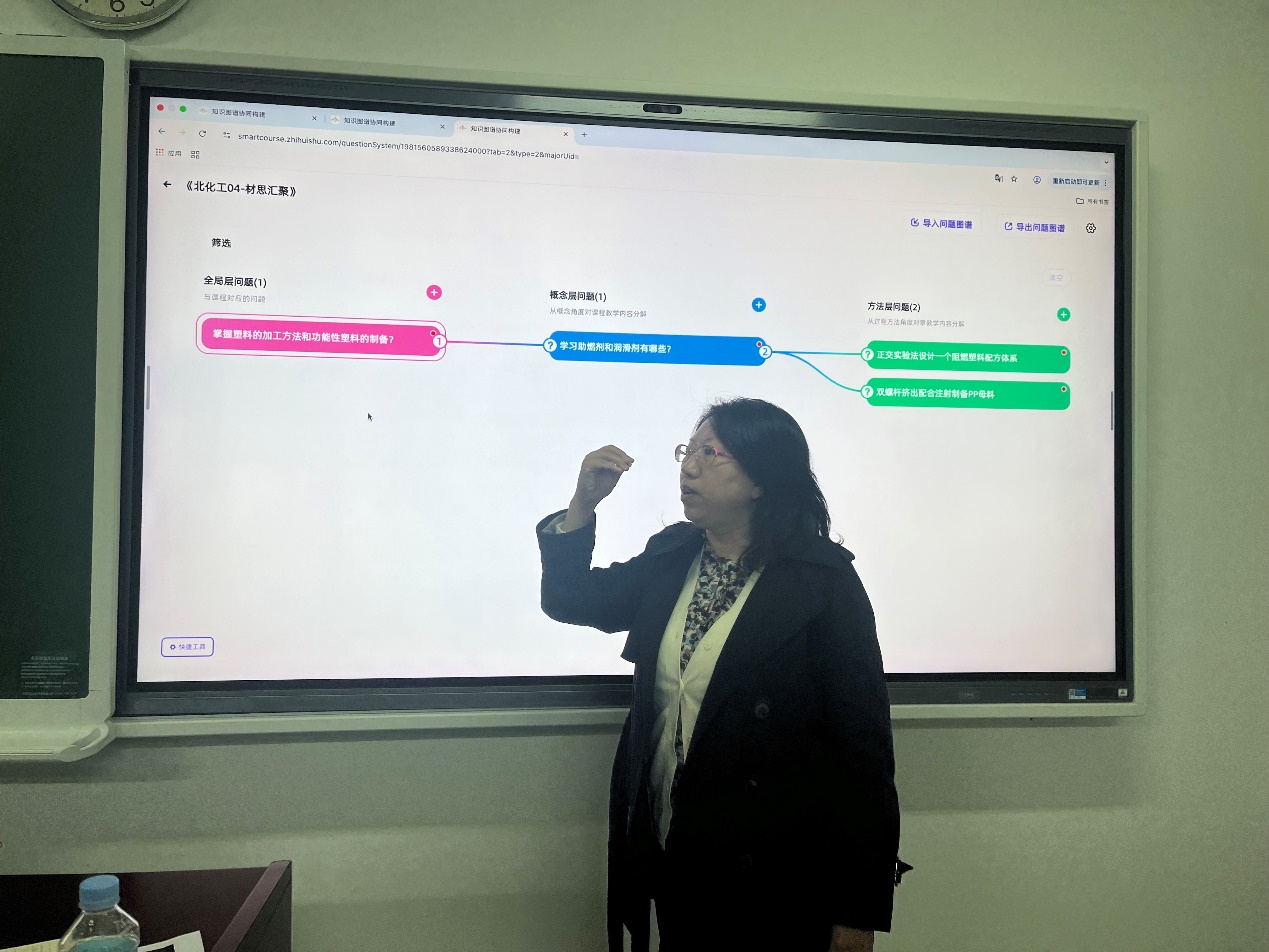 本次工作坊内容丰富,形式多样,主要包括以下四个环节。一是专家分享:活动邀请到北京航空航天大学化学学院朱英教授为活动作主题分享;二是课程知识模块设计:教师们共同探讨如何设计课程知识模块,以更好地满足学生个性化学习需求;三是知识图谱问题图谱搭建:通过分组实操,教师们体验了如何搭建知识图谱和问题图谱,将零散的知识点构建成有机的整体;四是AI工具的构思与体验:智慧树网专家介绍了AI工具在教学中的应用,包括如何利用AI助手提升备课效率和教学质量。