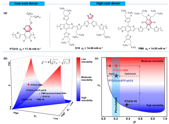 聚合物太阳能电池因其轻质、柔性和大面积制备的潜力而备受关注。近五年来,随着窄带隙小分子受体以及聚合物给体的快速发展,聚合物太阳能电池的能量转换效率(PCE)已突破20%。然而,如何设计一种能够在长期热应力和光照条件下保持高PCE的低成本材料体系,仍是其实现商业化的关键挑战。