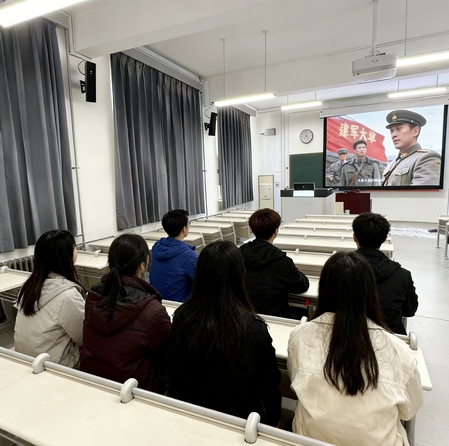 首先,党支部书记简要介绍了《建军大业》的创作背景与历史意义,强调了青年学子重温革命历史、铭记初心使命的重要性。随后,影片正式放映,生动再现了中国共产党领导武装起义、创建人民军队的峥嵘岁月,展现了革命先辈为民族独立和人民解放挺身而出的担当与勇气。同时,观影过程中,全体党员专注投入,被影片中震撼的历史场景和鲜明的人物形象深深打动,不时为革命先辈的坚定信念和牺牲精神动容。最后,影片结束后,部分党员代表分享了观影感悟,纷纷表示将从革命历史中汲取奋进力量,把爱国情、强国志转化为学习科研的实际行动。