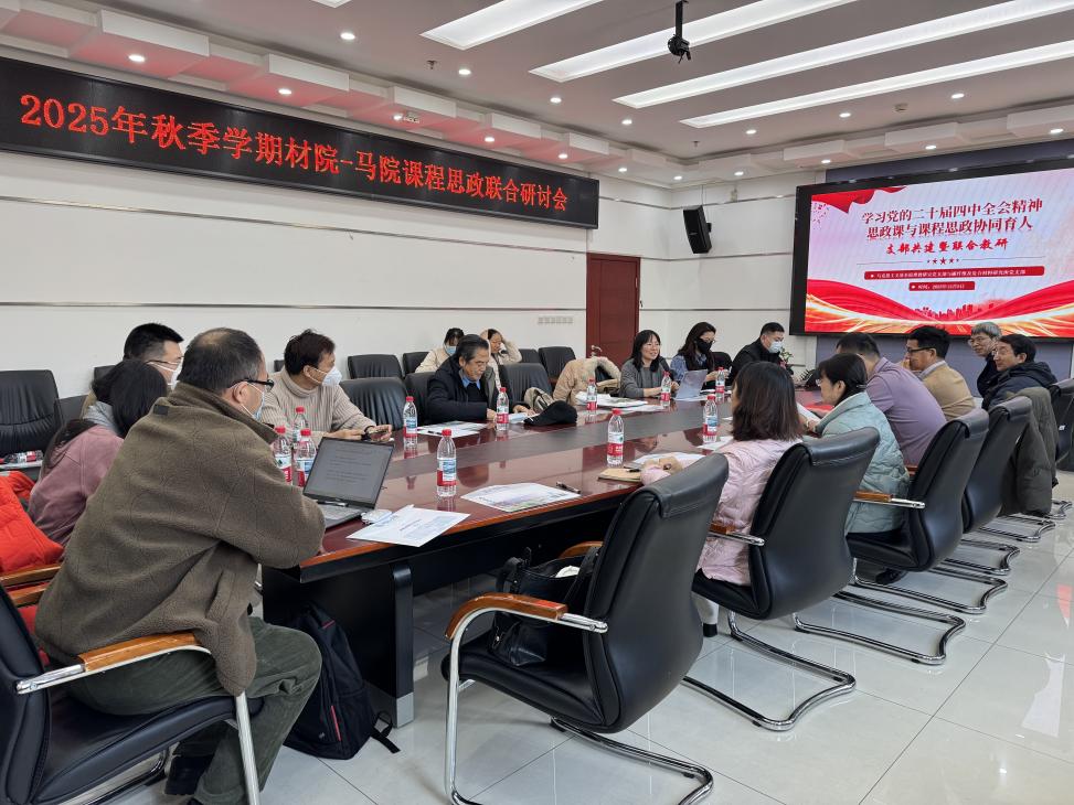 2025年12月5日上午,材料学院碳纤维及复合材料研究所党支部、马克思主义学院马克思主义基本原理教研室党支部开展联合共建暨课程思政联合教研。会议由材料学院教学副院长段顺教授主持,25位老师参加了会议。