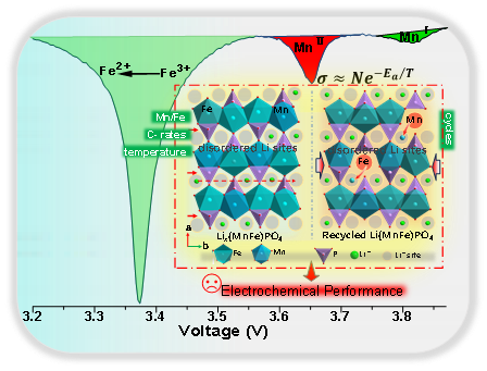 锂离子电池因其能量密度高、自放电率低、循环寿命长、应用范围广等优点,已在各类领域实现大规模商业化应用。其中,以LiFePO4为主要代表的橄榄石型磷酸盐正极材料的成本、寿命和安全优势突出,在储能与动力应用中占据主导地位。为进一步提高磷酸盐锂离子电池的能量密度,LiMnyFe1-yPO4被认为是继LiFePO4的最佳正极材料。但受制于Mn3+的Jahn-Teller畸变,Mn3+/Mn2+反应的缓慢动力学,过渡金属溶解等问题,LiMnyFe1-yPO4材料急待阐明其本质性能衰减机理,从而为解决其目前倍率性能与循环性能差等痛点问题提供突破口,以加速其产业化进程。