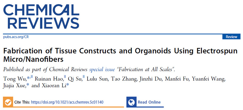 论文信息: T. Wu, R. Hao, Q. Su, L. Sun, T. Zhang, J. Du, M. Fu, Y. Wang, J. Xue, X. Li, Fabrication of Tissue Constructs and Organoids Using Electrospun Micro/Nanofibers, Chemical Reviews (2026). DOI :10.1021/acs.chemrev.5c01140.